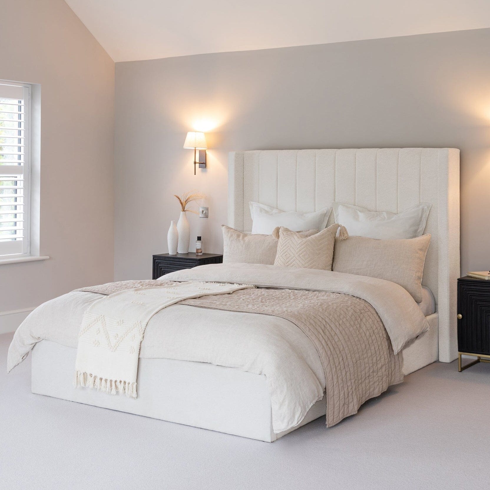 The Alice Ecru Boucle king size bed complements a modern bedroom aesthetic, and can be styled with ease with neutral bedding and textured throws and cushions to add to the luxurious allure of this bedroom furniture piece. Alice thrives next to old bedside tables, so opt for the Charlie range to effortlessly turn your bedroom into a sophisticated and serene oasis you will adore.