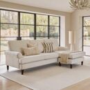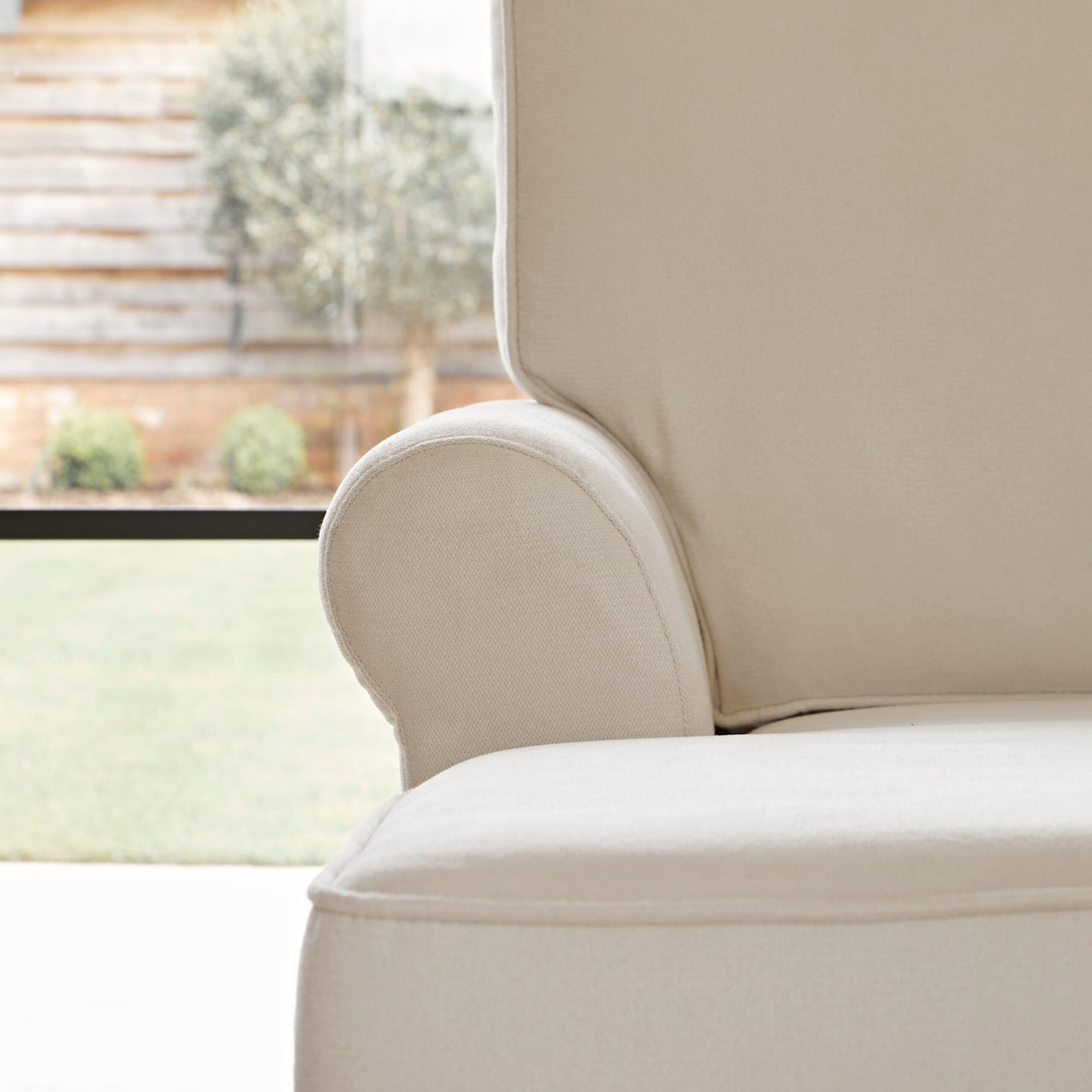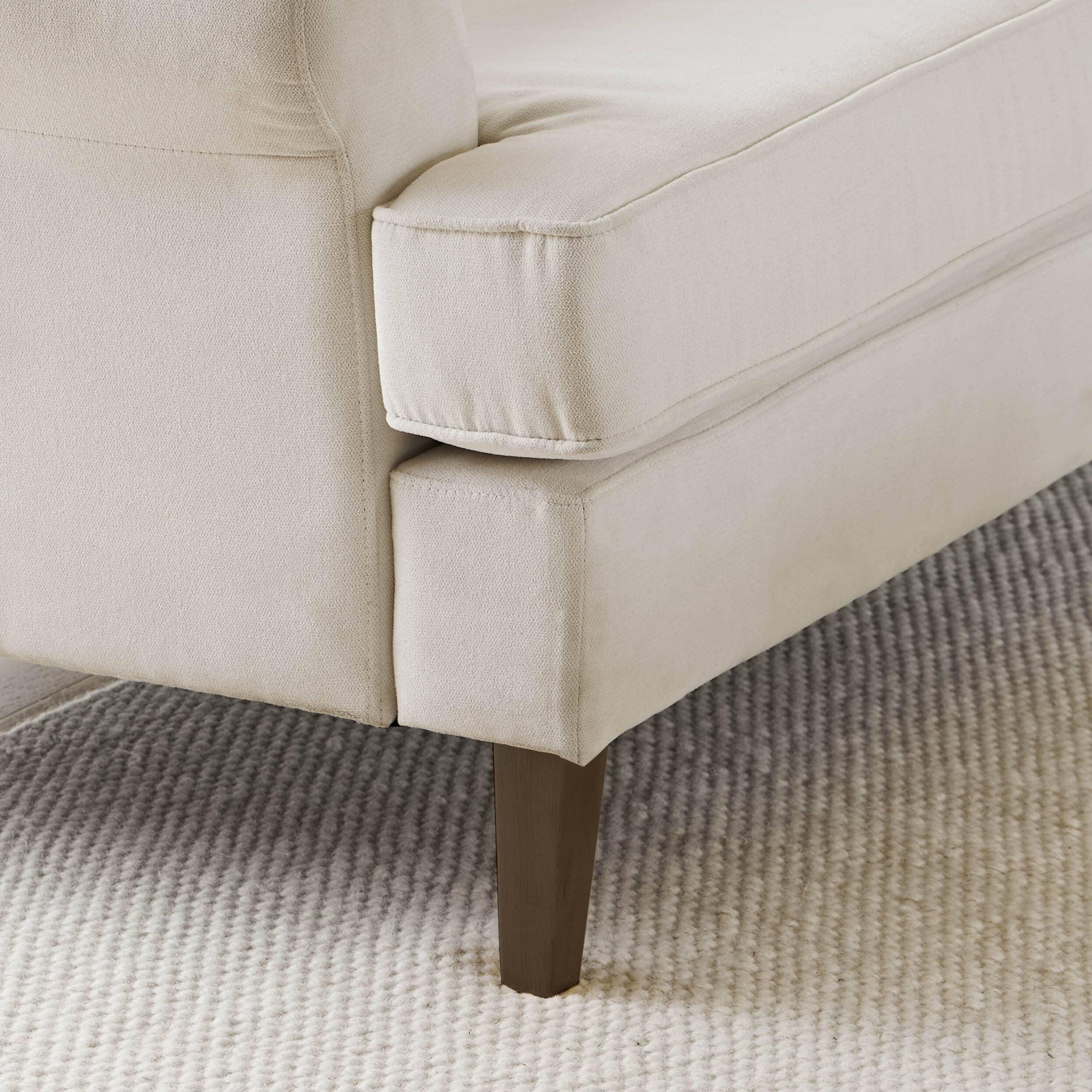 Designed with comfort in mind, this natural coloured sofa beckons you to sink in while creating a sense of timeless elegance. The piped curved armrests and cushions, harmonising with the dark oak legs, contribute to its sophisticated and timeless appearance. The Annabelle range presents a thoughtfully curated selection of beautiful fabrics, handpicked by the Laura James team to complement various personalities and interiors. The Annabelle is available in natural ivory hue, a soft-touch woven fabric serving as a versatile neutral for both cool and warm colour schemes, as well as in cloud grey with pale oak legs.