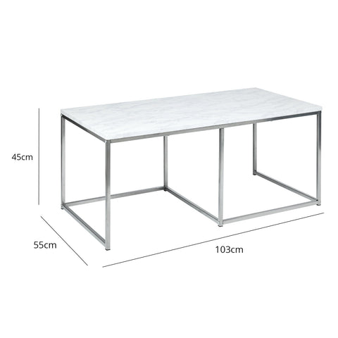 Give your living room a little refresh with this modern coffee table and side table set. With a realistic marble effect top, Jay is the perfect feature for complementing any living room aesthetic and adding a sophisticated and modern look to your home.